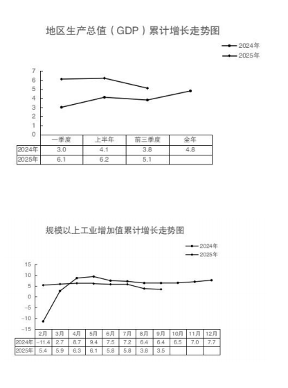 根据河源市地区生产总值统一核算结果,2025年前三季度全县地区生产总值为1382589万元,同比增长5.1%。其中,第一产业增加值为255225万元,同比增长7.5%;第二产业增加值为492213万元,同比增长3.5%;第三产业增加值为635151万元,同比增长5.4%。