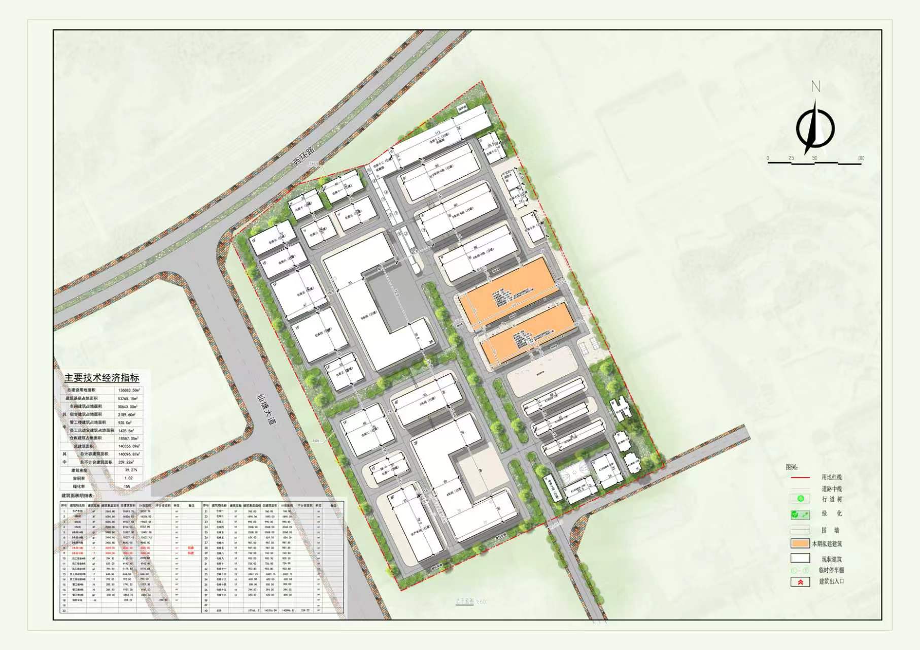 项目位于县城徐洞片区富民工业园内,总用地面积136883.5平方米,用地性质为工业用地,建设单位为华康塑胶制品(东源)有限公司,原方案于2017年经原城建规划局第11次技术联审会审议通过。建设单位向我局提交调整方案,主要调整内容为:取消原规划的三栋六层宿舍楼及一栋四层车间,调整为两栋单层车间。调整后方案主要经济技术指标为:总建筑面积共140356.09平方米(其中计容建筑面积为140096.87平方米、不计容建筑面积为259.22平方米),容积率为1.02,建筑密度为39.27%,绿地率为15%。